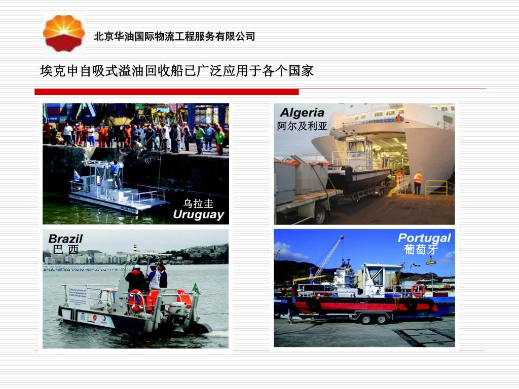 北京华油国际物流工程服务有限公司 埃克申自吸式溢油回收船已广泛应用于各个国家 阿尔及利亚 乌拉圭 巴 西 葡萄牙