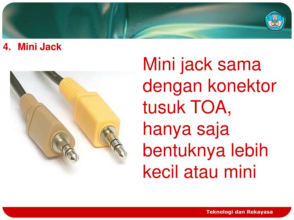 Mini Jack Mini jack samadengankonektortusuk TOA, hanyasajabentuknyalebihkecilatau mini Teknologi dan Rekayasa