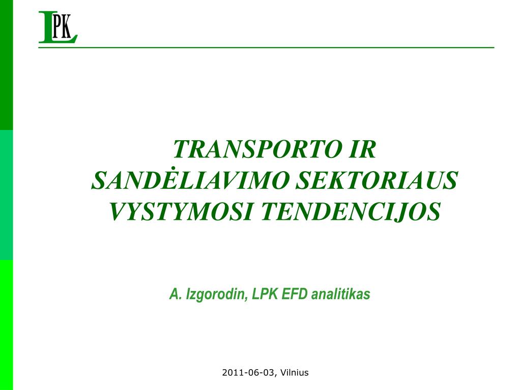 TRANSPORTO IR SANDĖLIAVIMO SEKTORIAUS VYSTYMOSI TENDENCIJOS A. Izgorodin, LPK EFD analitikas 2011-06-03, Vilnius