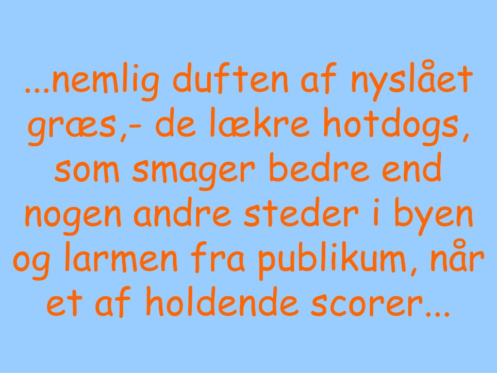 ...nemlig duften af nyslået græs,- de lækre hotdogs, som smager bedre end nogen andre steder i byen og larmen fra publikum, når et af holdende scorer...