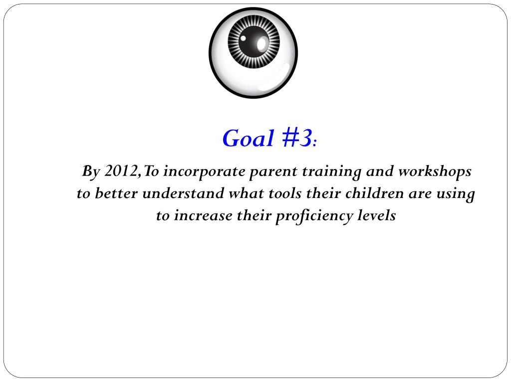 Goal #3: By 2012, To incorporate parent training and workshops to better understand what tools their children are using to increase their proficiency levels