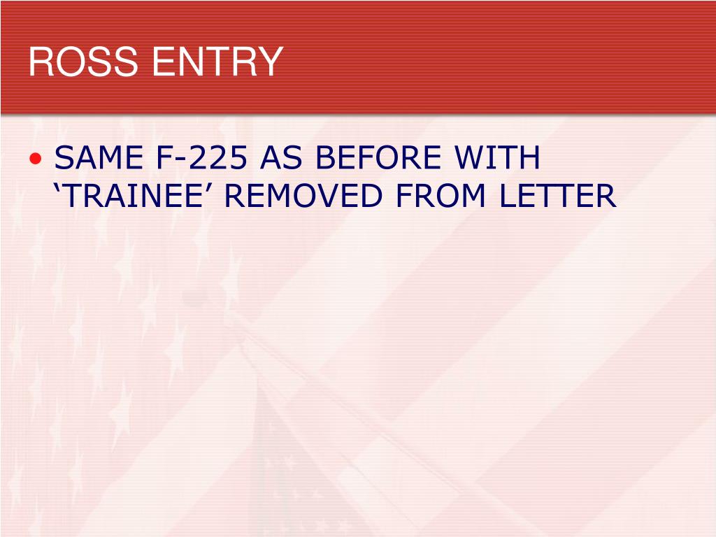 ROSS ENTRY • SAME F-225 AS BEFORE WITH ‘TRAINEE’ REMOVED FROM LETTER
