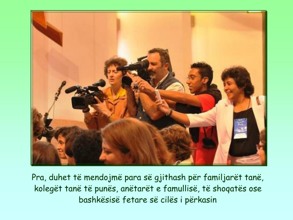 Pra, duhet të mendojmë para së gjithash për familjarët tanë, kolegët tanë të punës, anëtarët e famullisë, të shoqatës ose bashkësisë fetare së cilës i përkasin