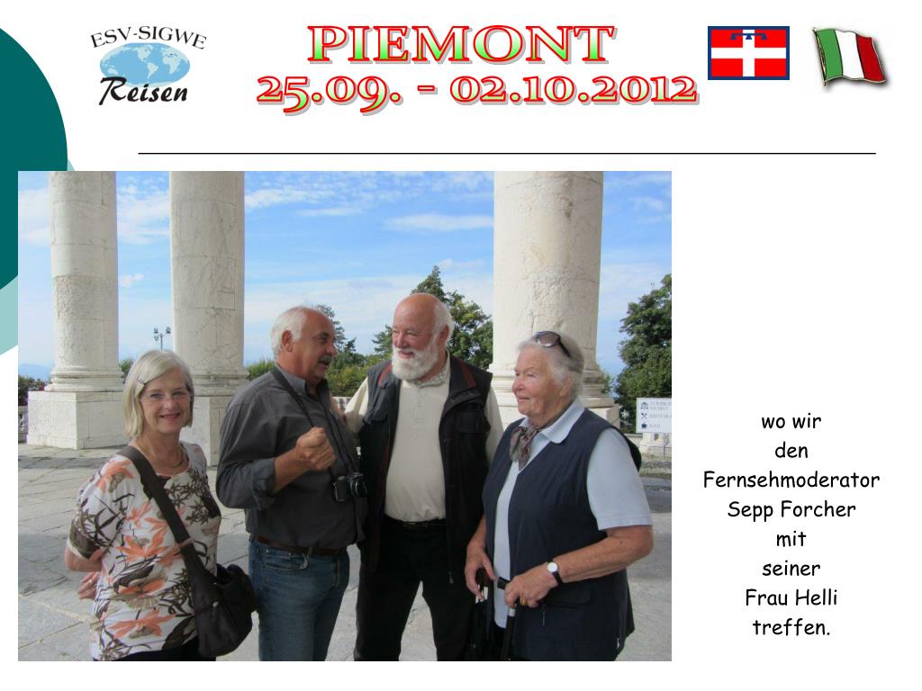 PIEMONT 25.09. - 02.10.2012 wo wir den Fernsehmoderator Sepp Forcher mit seiner Frau Helli treffen.