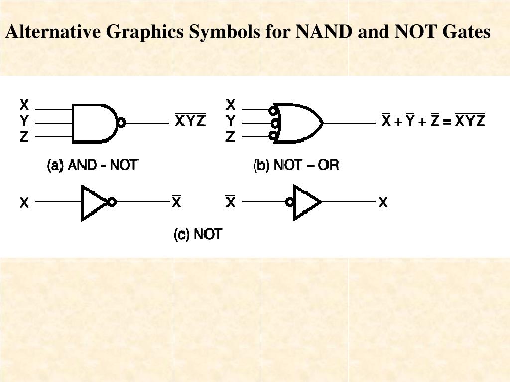 Generalized De Morgan’s Theorem • NOT all variables • Change & to + and + to & • NOT the result • -------------------------------------------- • F = X & Y + X & Z + Y & Z • F = !((!X + !Y) & (!X + !Z) & (!Y + !Z)) • F = !(!(X & Y) & !(X & Z) & !(Y & Z))