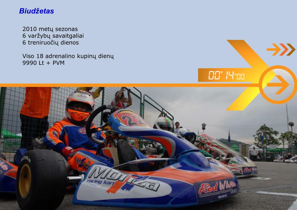 Biudžetas 2010 metų sezonas 6 varžybų savaitgaliai 6 treniruočių dienos Viso 18 adrenalino kupinų dienų 9990 Lt + PVM