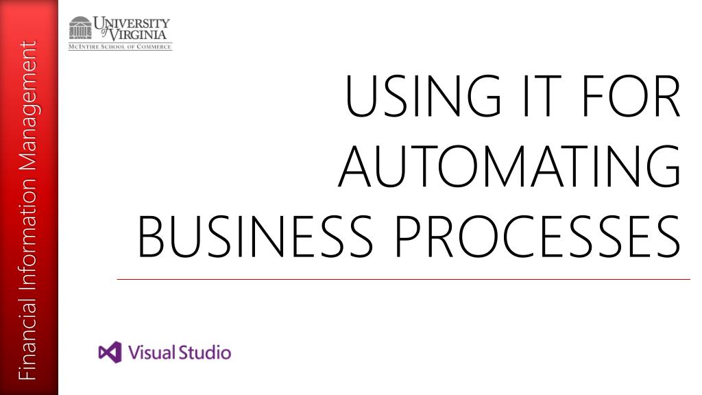 Explore how to automate business processes using technology in finance. Learn to create macros in Excel for tasks like monthly summaries, custom commands, and front-end interfaces. Understand the software development life cycle from code to machine instructions.