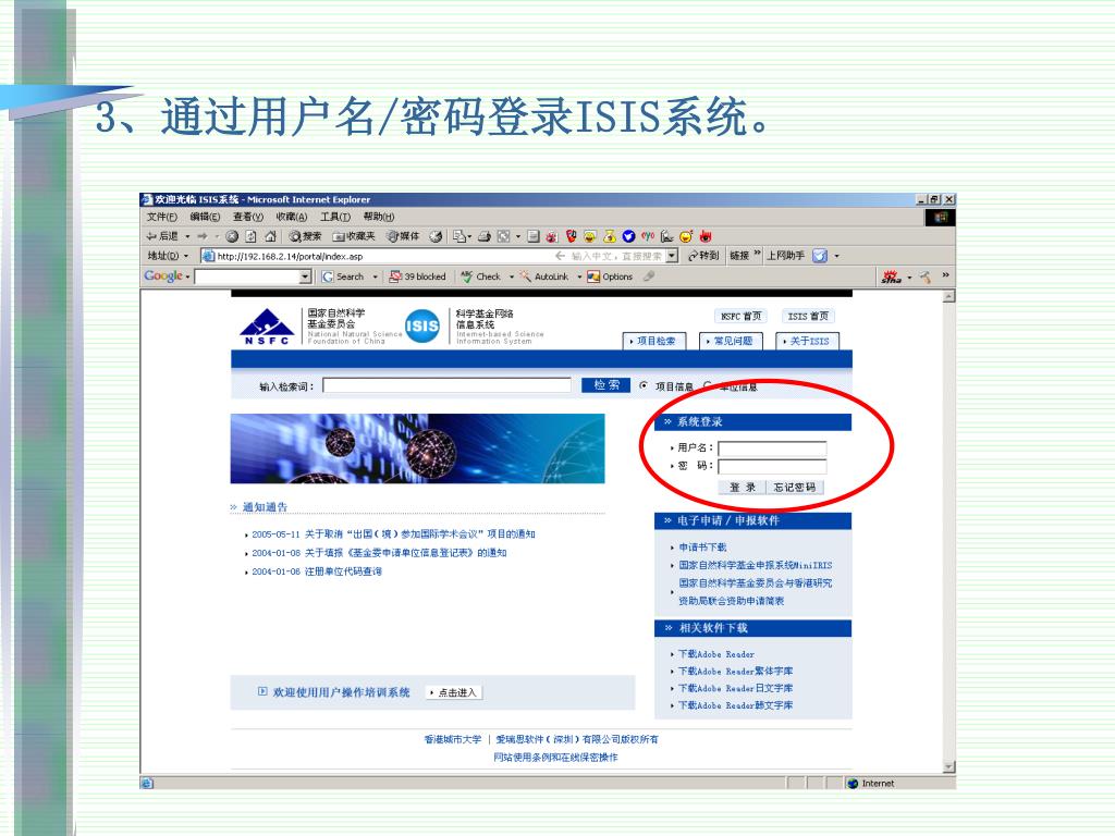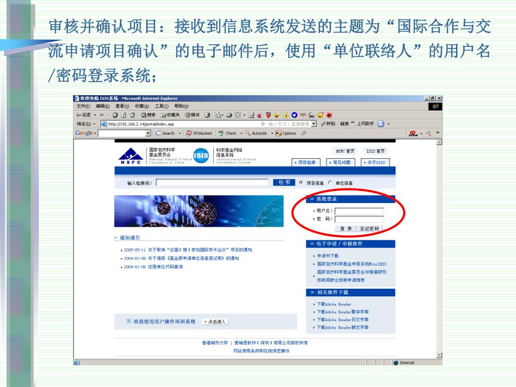 项目负责人 使用您的用户名/密码登录ISIS系统