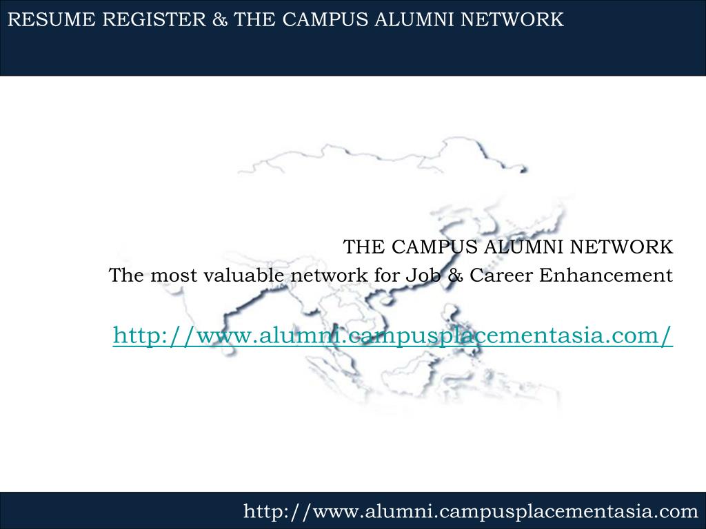RESUME REGISTER & THE CAMPUS ALUMNI NETWORK THE CAMPUS ALUMNI NETWORK The most valuable network for Job & Career Enhancement http://www.alumni.campusplacementasia.com/ http://www.alumni.campusplacementasia.com
