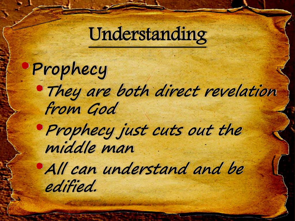 Understanding • Prophecy • They are both direct revelation from God • Prophecy just cuts out the middle man • All can understand and be edified.