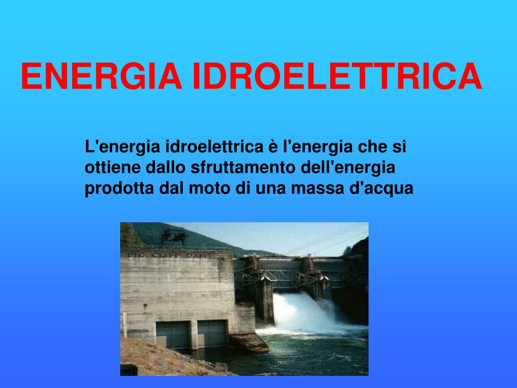 ENERGIA IDROELETTRICA L'energia idroelettrica è l'energia che si ottiene dallo sfruttamento dell'energia prodotta dal moto di una massa d'acqua