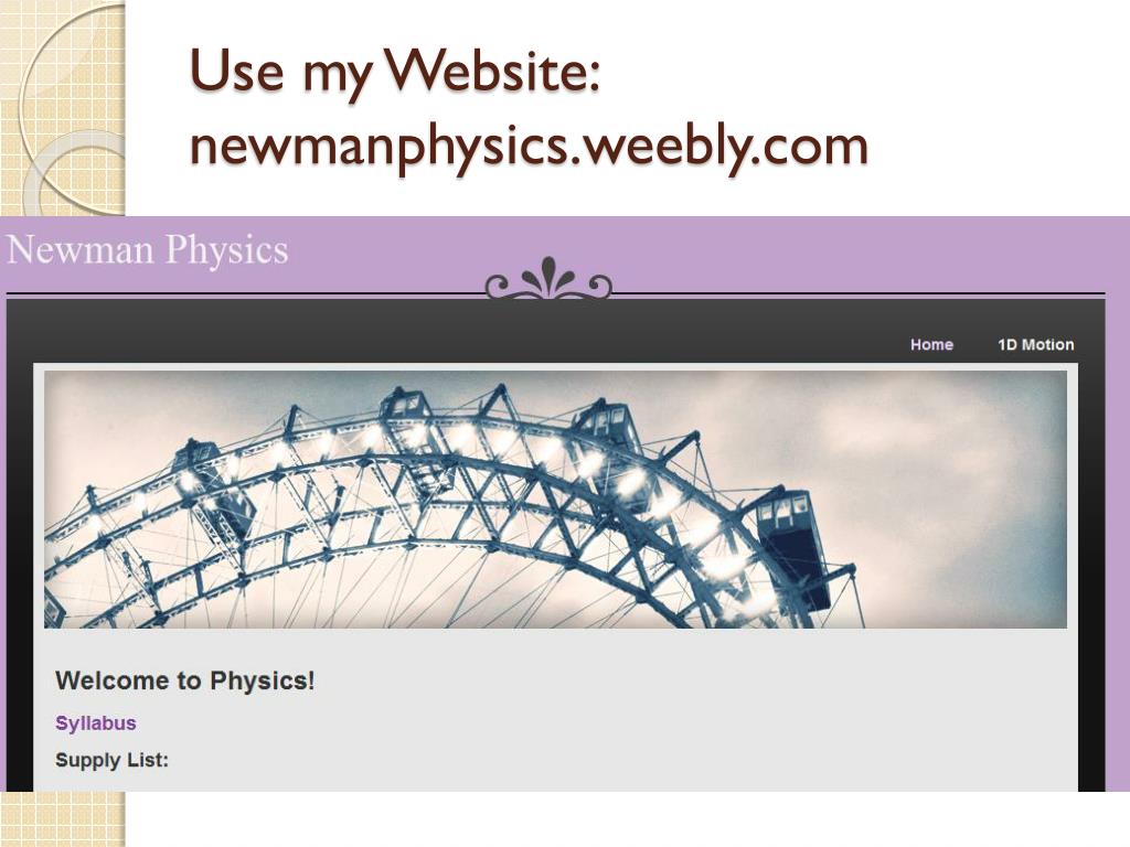 Whatwillbeexpected of me in physics? • Make the classroom a good learning environment for everyone. • Follow all school rules.