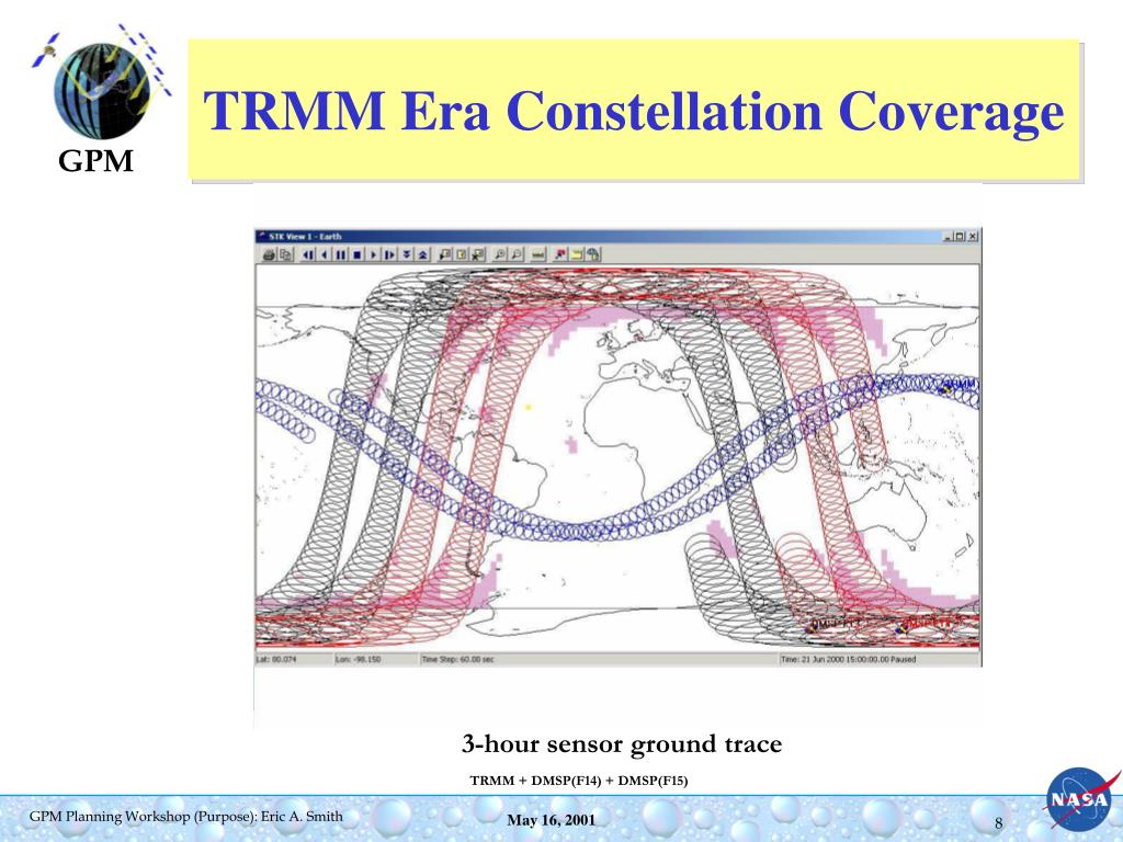 TRMM Era Constellation Coverage 3-hour sensor ground trace TRMM + DMSP(F14) + DMSP(F15)