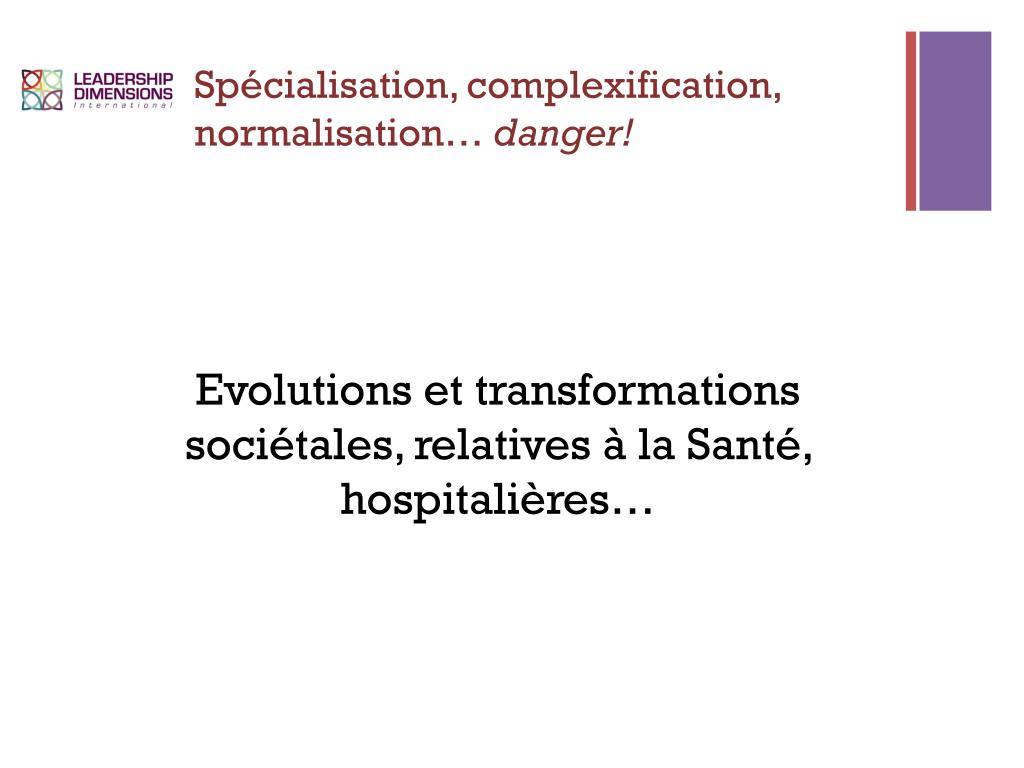 Spécialisation, complexification, normalisation… danger! Evolutions et transformations sociétales, relatives à la Santé, hospitalières…