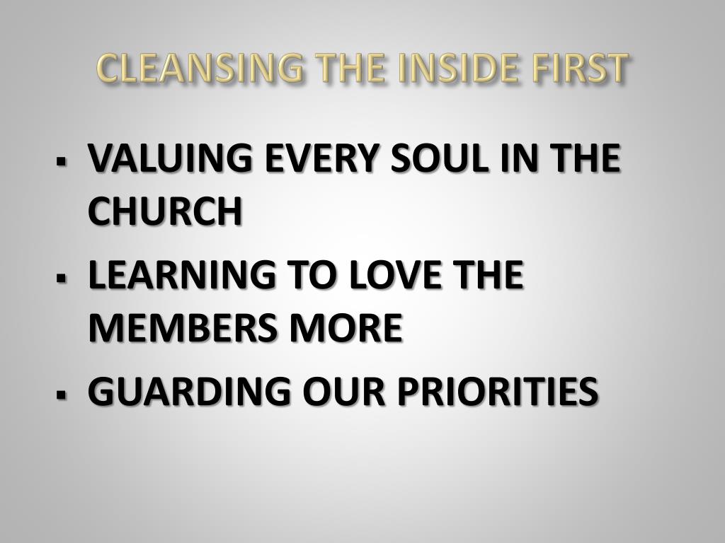 CLEANSING THE INSIDE FIRST • VALUING EVERY SOUL IN THE CHURCH • LEARNING TO LOVE THE MEMBERS MORE • GUARDING OUR PRIORITIES