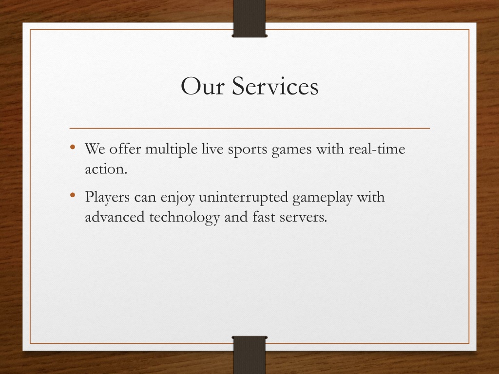 Our Services • We offer multiple live sports games with real-time action. • Players can enjoy uninterrupted gameplay with advanced technology and fast servers.