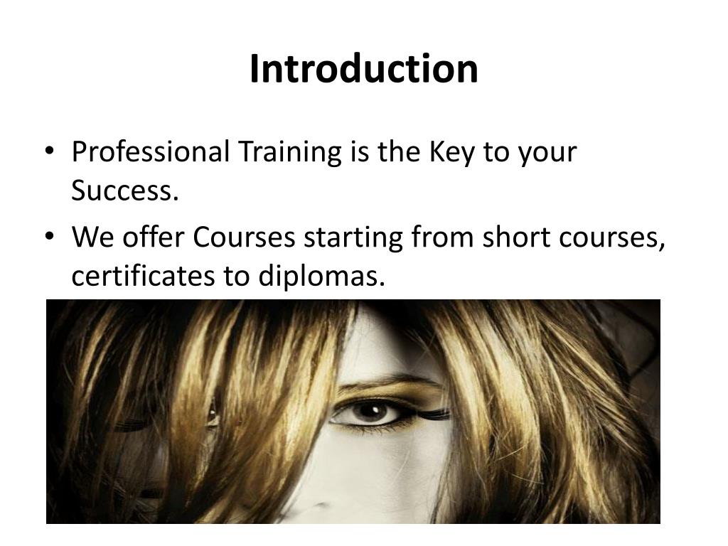 Introduction • Professional Training is the Key to your Success. • We offer Courses starting from short courses, certificates to diplomas.