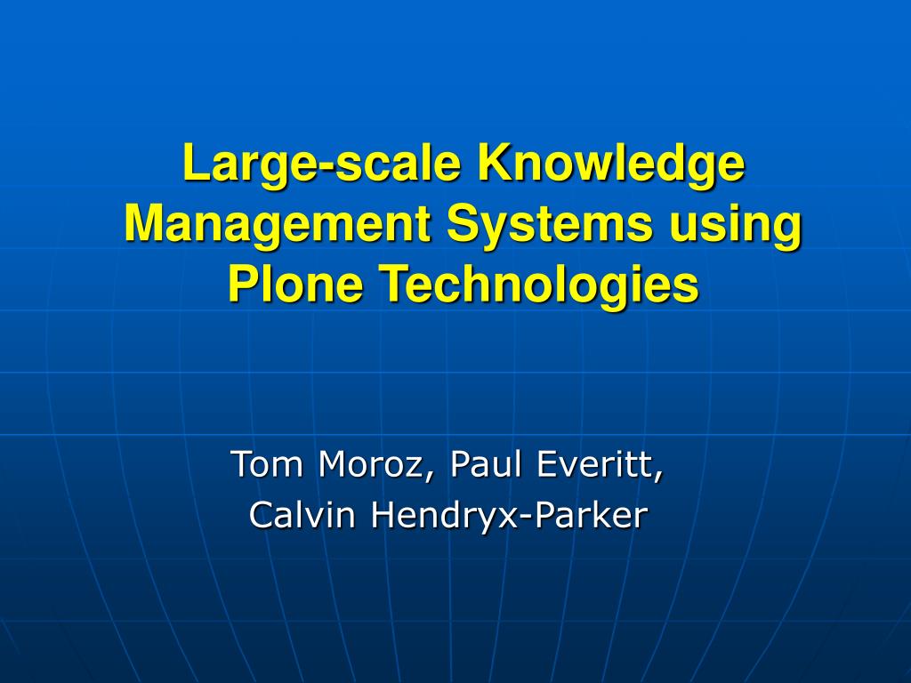 Large-scale Knowledge Management Systems using Plone Technologies Tom Moroz, Paul Everitt, Calvin Hendryx-Parker