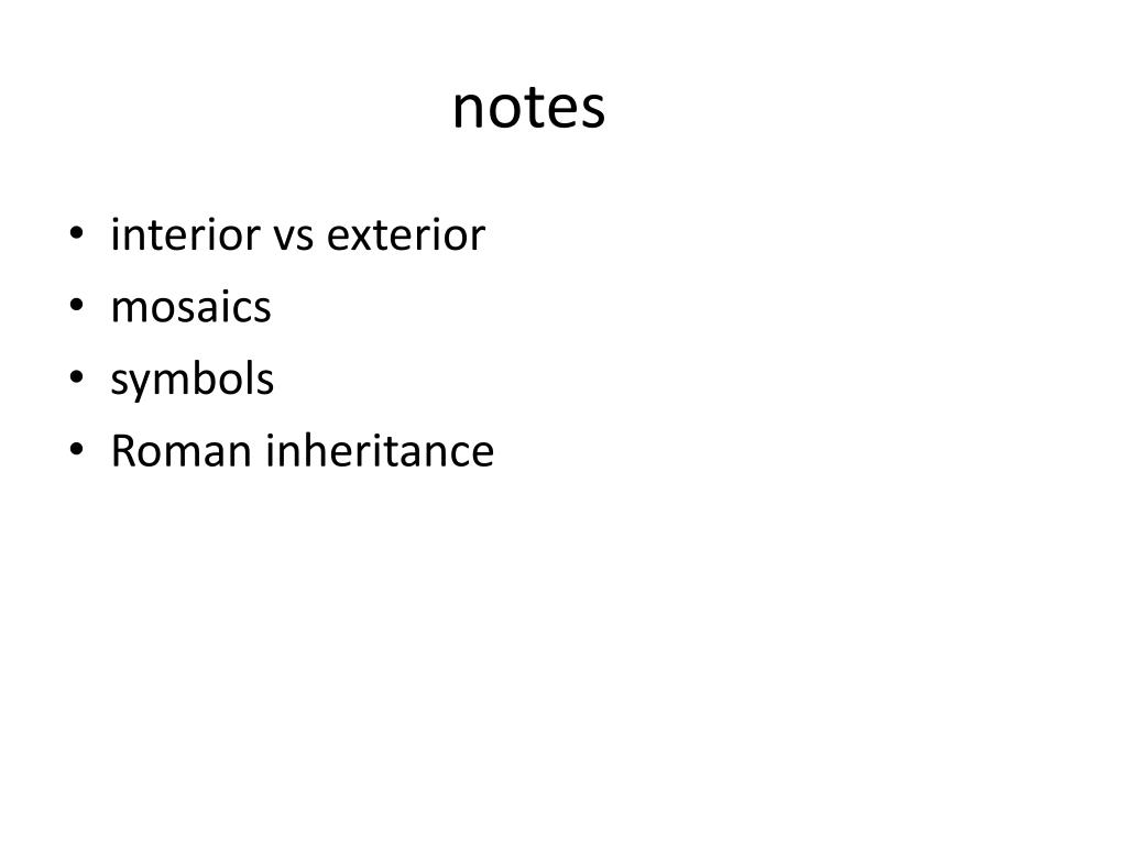 notes • interior vs exterior • mosaics • symbols • Roman inheritance
