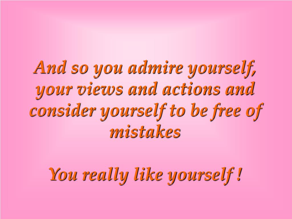 And so you admire yourself, your views and actions and consider yourself to be free of mistakesYou really like yourself !