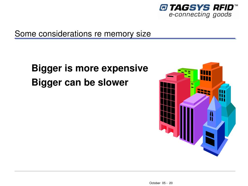 Some considerations re memory size Bigger is more expensive Bigger can be slower