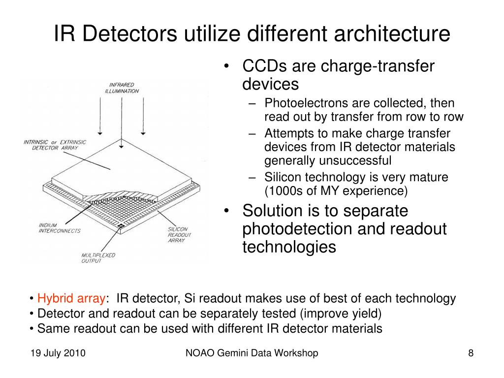 An Introduction to Infrared Detectors Dick Joyce (NOAO). NEWFIRM 4K x 4K array; Mike Merrill. Now that you know all about CCDs…. Introduction to the infrared Physics of infrared detectors Detector architecture Detector operation Observing with infrared detectors