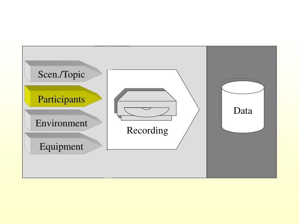 Scen./Topic Recording Data Participants Environment Equipment Data Collection Procedure Example: Mass-Data Collection (Showcase 1) Monolingual data collection for system development “Assembling Line”