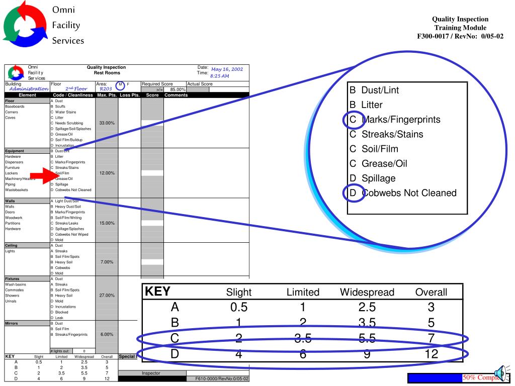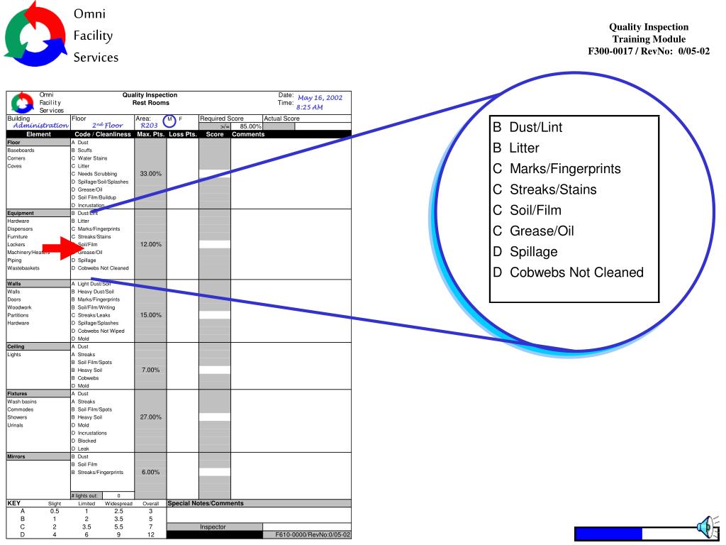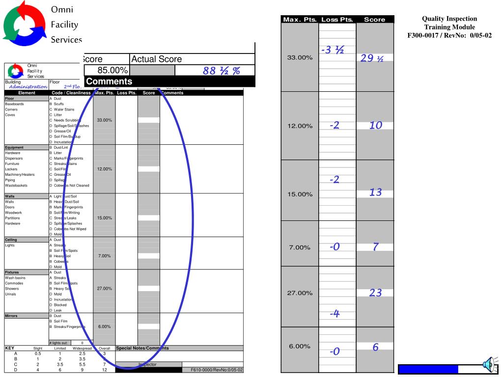 Omni Facility Services Quality Inspection Training This module is a controlled document within the Omni Facility Services document control system and falls under the championship of the Quality Assurance Department.