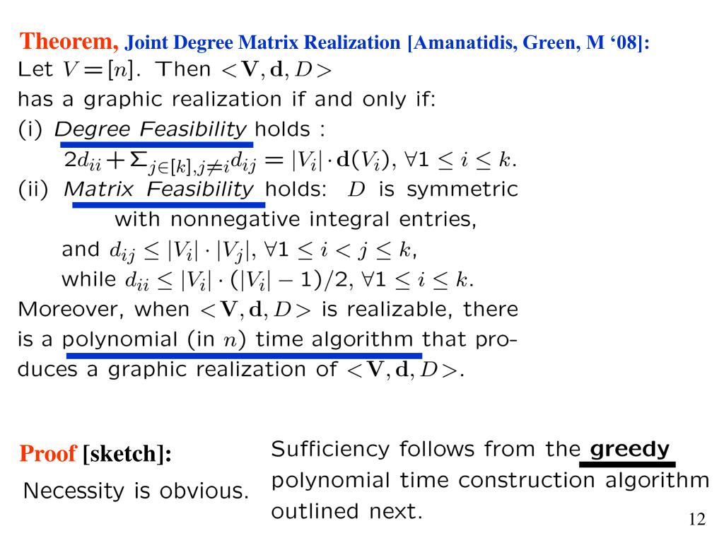 Theorem, Joint Degree Matrix Realization[Amanatidis, Green, M ‘08]: Proof [sketch]: 12