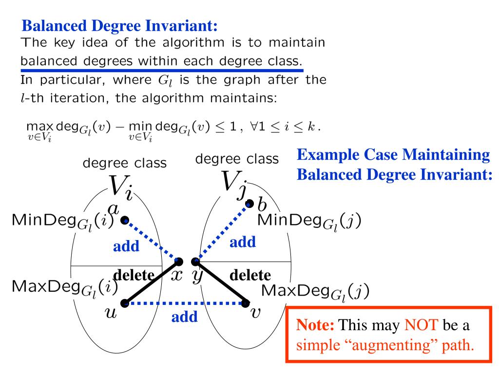 Note:This may NOT be a simple “augmenting” path. Balanced Degree Invariant: Example Case Maintaining Balanced Degree Invariant: add add delete delete add