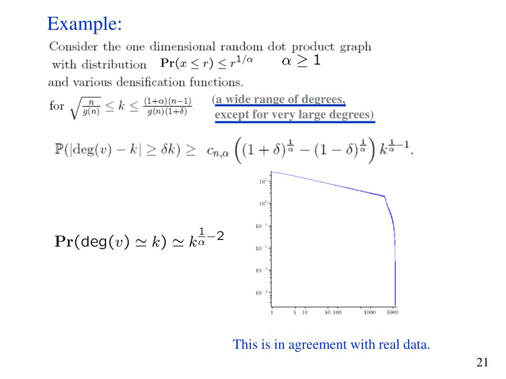 Example: (a wide range of degrees, except for very large degrees) This is in agreement with real data. 21
