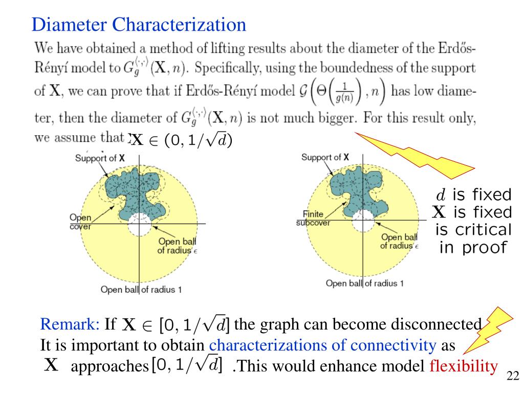 Theorem [Young, M ’08] Diameter Characterization Remark: If the graph can become disconnected. It is important to obtain characterizations of connectivity as approaches .This would enhance model flexibility 22
