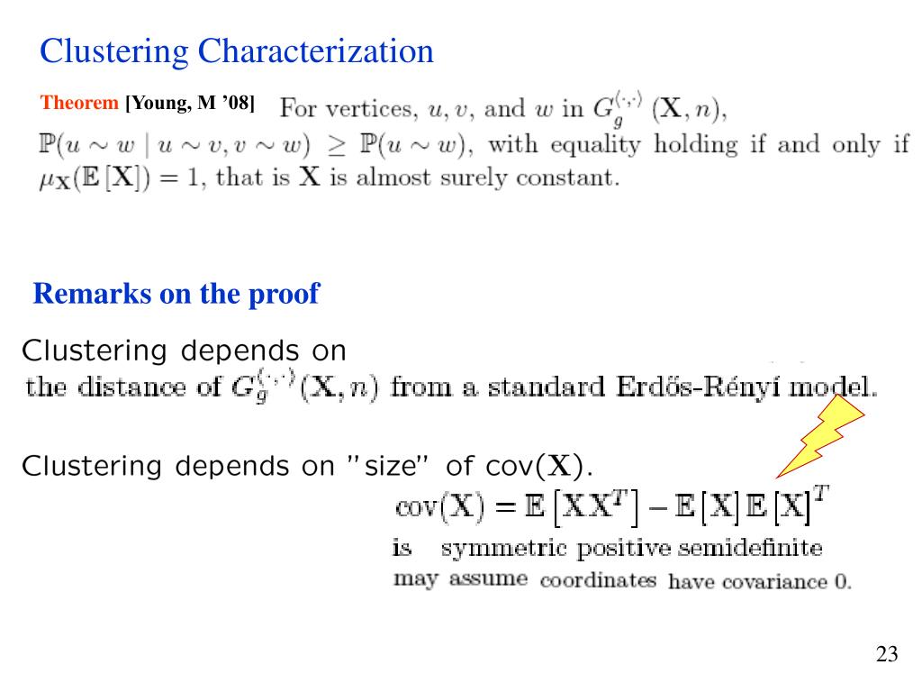 Clustering Characterization Theorem [Young, M ’08] Remarks on the proof 23