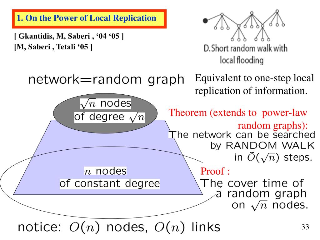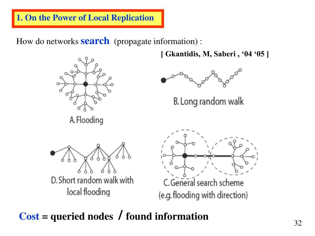 1. On the Power of Local Replication How do networks search (propagate information) : [ Gkantidis, M, Saberi , ‘04 ‘05 ] Cost = queried nodes / found information 32
