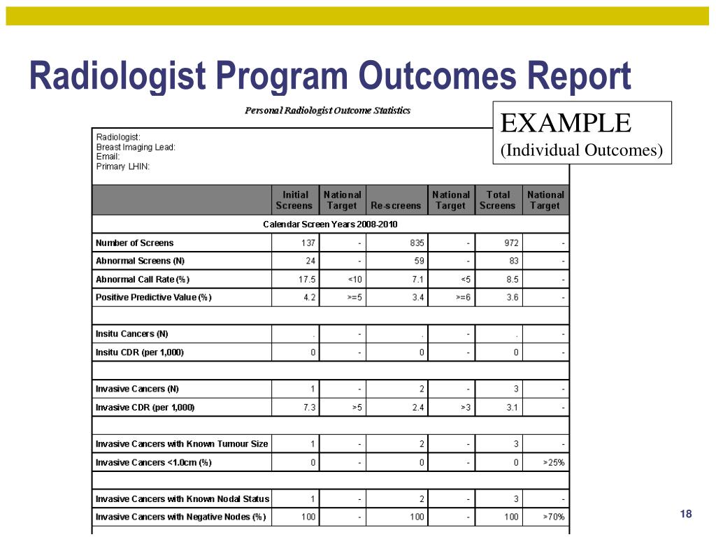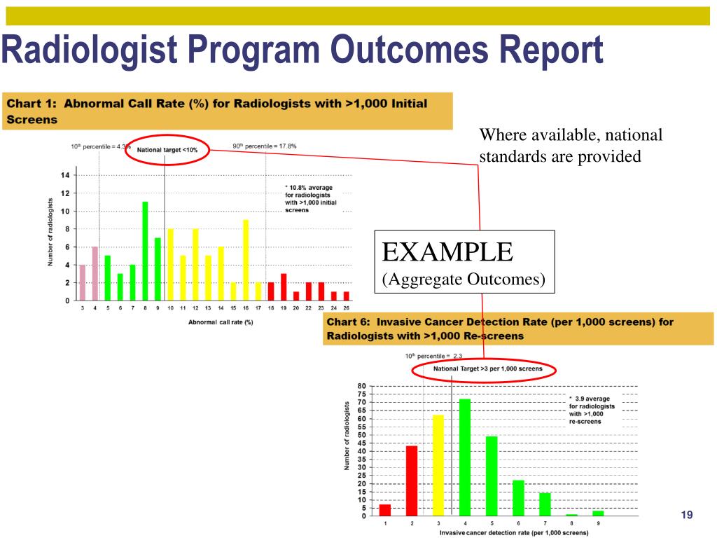 Radiologist Program Outcomes Report Where available, national standards are provided EXAMPLE (Aggregate Outcomes)