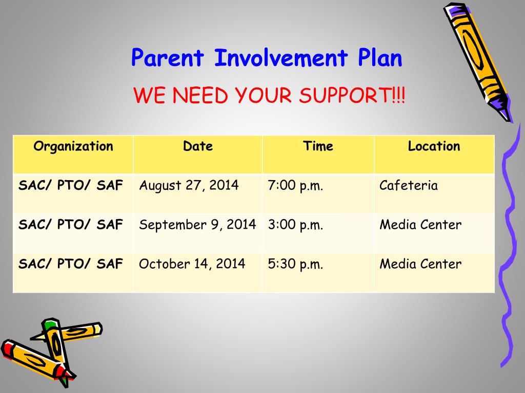 Parent Involvement Plan WE NEED YOUR SUPPORT!!!