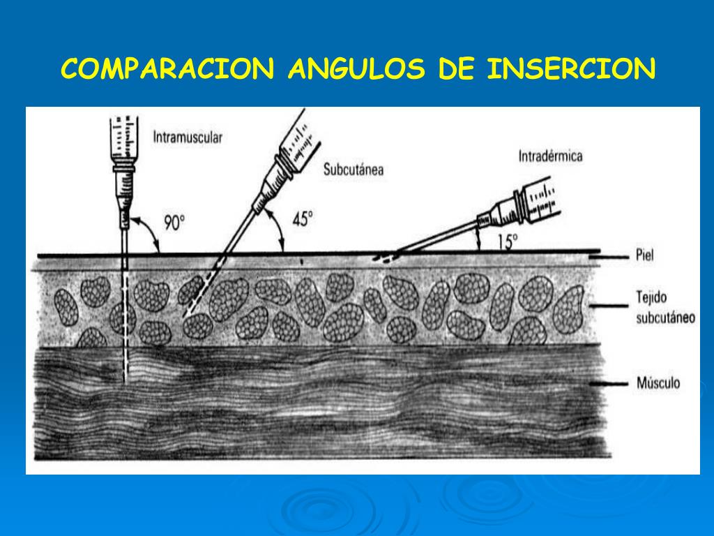 ZONAS DE APLICACIÓN INTRADERMICA: • Cara anterior del antebrazo, cuatro traveses de dedo por encima de la flexura de la muñeca y dos traveses de dedo por debajo de la flexura del codo. Es el lugar que se elige con más frecuencia. • Cara anterior y superior del tórax, por debajo de las clavículas. • Parte superior de la espalda, a la altura de las escápulas. …. ….. ….. …. …. ….. …. ….