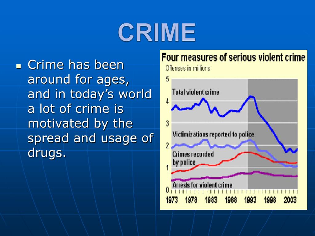 CRIME • Crime has been around for ages, and in today’s world a lot of crime is motivated by the spread and usage of drugs.