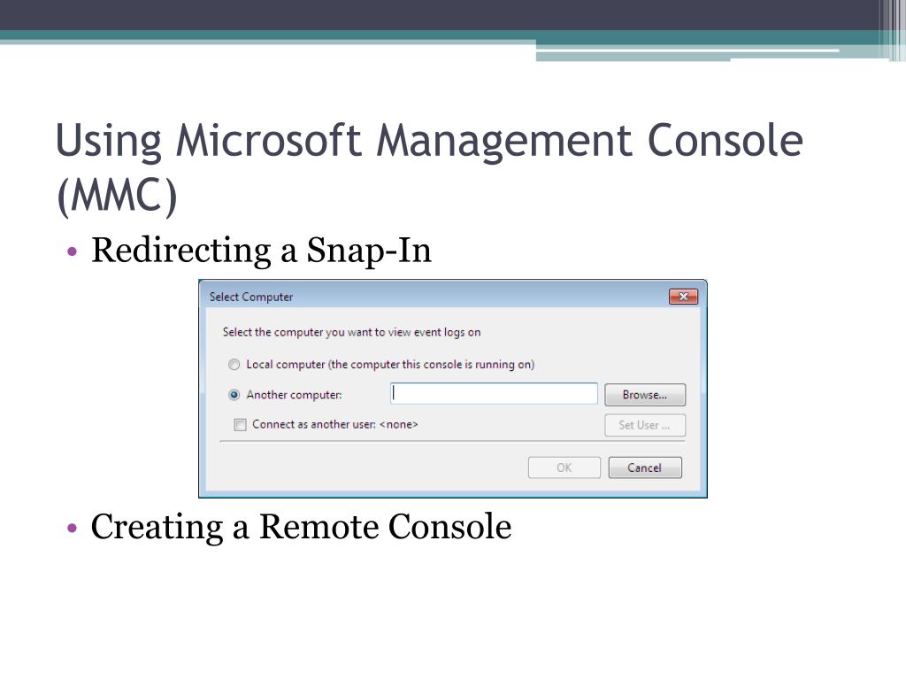 Using Microsoft Management Console (MMC) • Redirecting a Snap-In • Creating a Remote Console