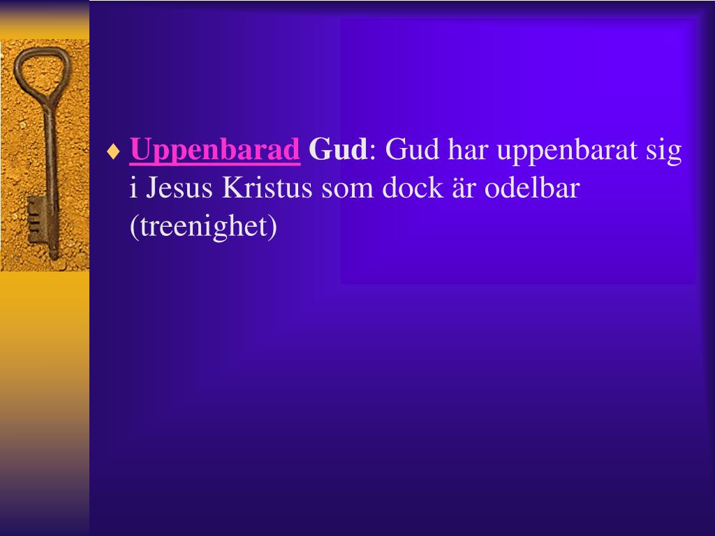 Uppenbarad Gud: Gud har uppenbarat sig i Jesus Kristus som dock är odelbar (treenighet)