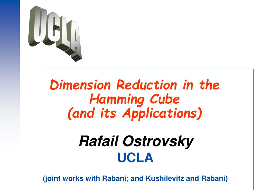 Dimension Reduction in the Hamming Cube (and its Applications) Rafail Ostrovsky UCLA (joint works with Rabani; and Kushilevitz and Rabani)