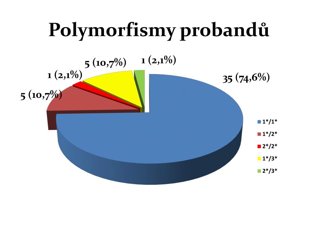 Polymorfismy probandů 1 (2,1%) 5 (10,7%) 1 (2,1%) 35 (74,6%) 5 (10,7%)