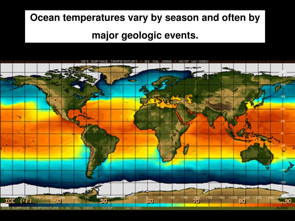Ocean temperatures vary by season and often by major geologic events.
