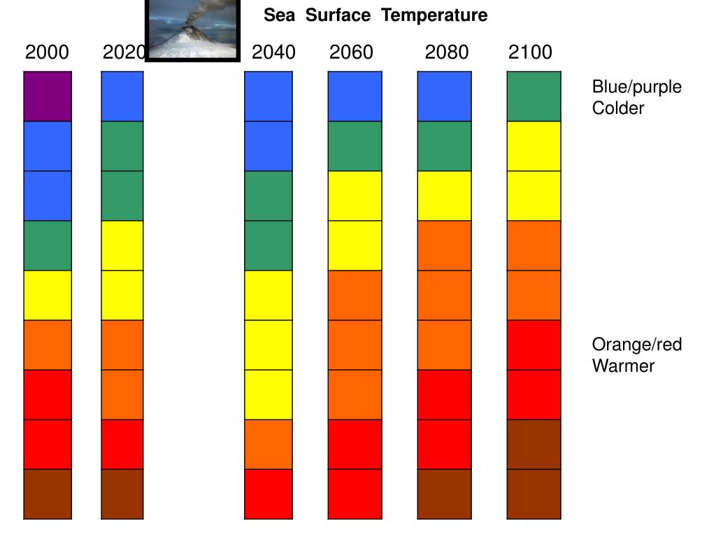 Sea Surface Temperature 2000 2020 2040 2060 2080 2100 Blue/purple Colder Orange/red Warmer