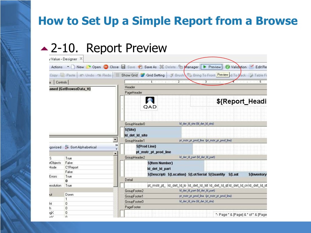 2-17. Preview the report again How to Set Up a Simple Report from a Browse