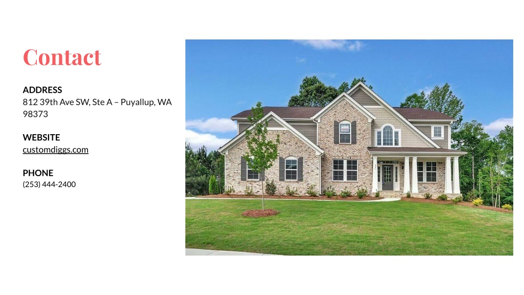 Contact ADDRESS 812 39th Ave SW, Ste A – Puyallup, WA 98373 WEBSITE customdiggs.com PHONE (253) 444-2400
