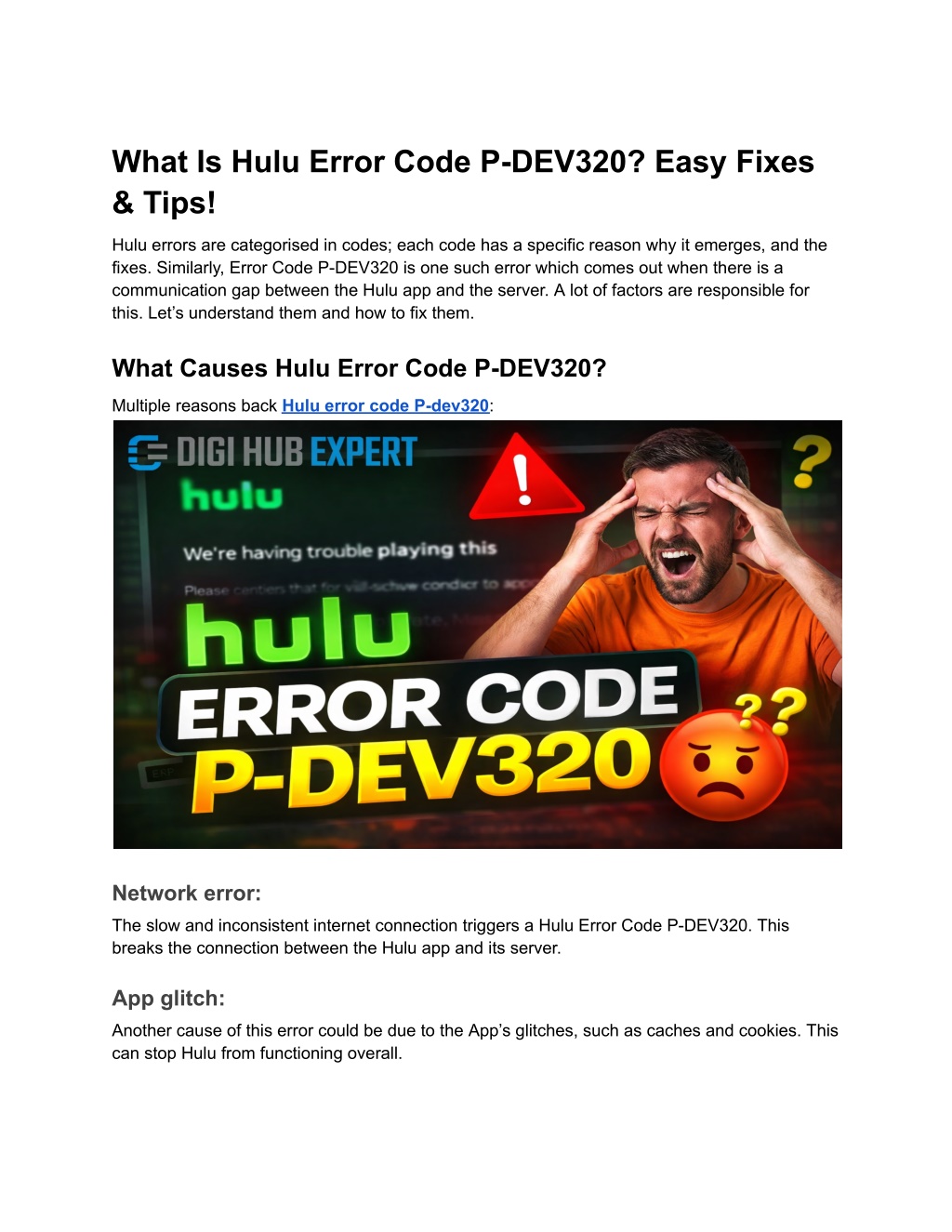 What Is Hulu Error Code P-DEV320? Easy Fixes & Tips! Hulu errors are categorised in codes; each code has a specific reason why it emerges, and the fixes. Similarly, Error Code P-DEV320 is one such error which comes out when there is a communication gap between the Hulu app and the server. A lot of factors are responsible for this. Let’s understand them and how to fix them. What Causes Hulu Error Code P-DEV320? Multiple reasons back Hulu error code P-dev320: Network error: The slow and inconsistent internet connection triggers a Hulu Error Code P-DEV320. This breaks the connection between the Hulu app and its server. App glitch: Another cause of this error could be due to the App’s glitches, such as caches and cookies. This can stop Hulu from functioning overall.