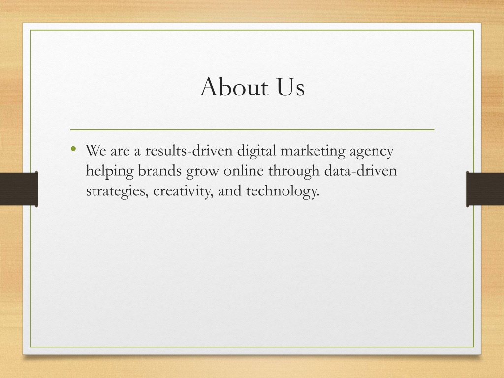 About Us • We are a results-driven digital marketing agency helping brands grow online through data-driven strategies, creativity, and technology.