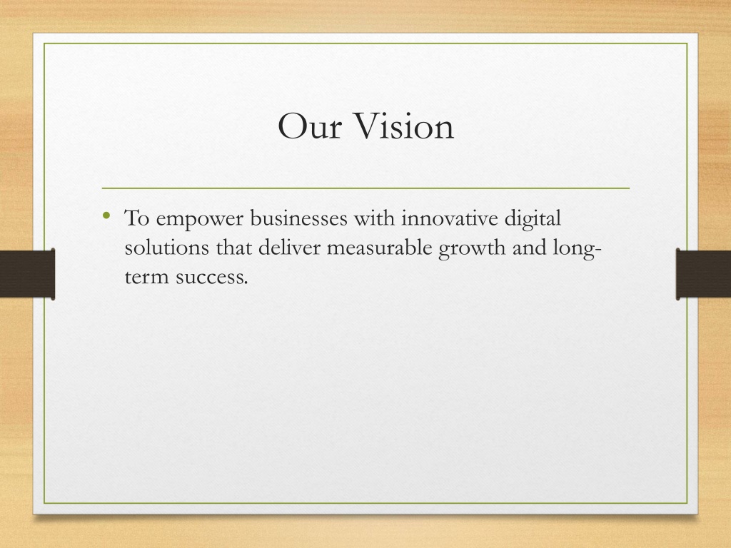 Our Vision • To empower businesses with innovative digital solutions that deliver measurable growth and long-term success.