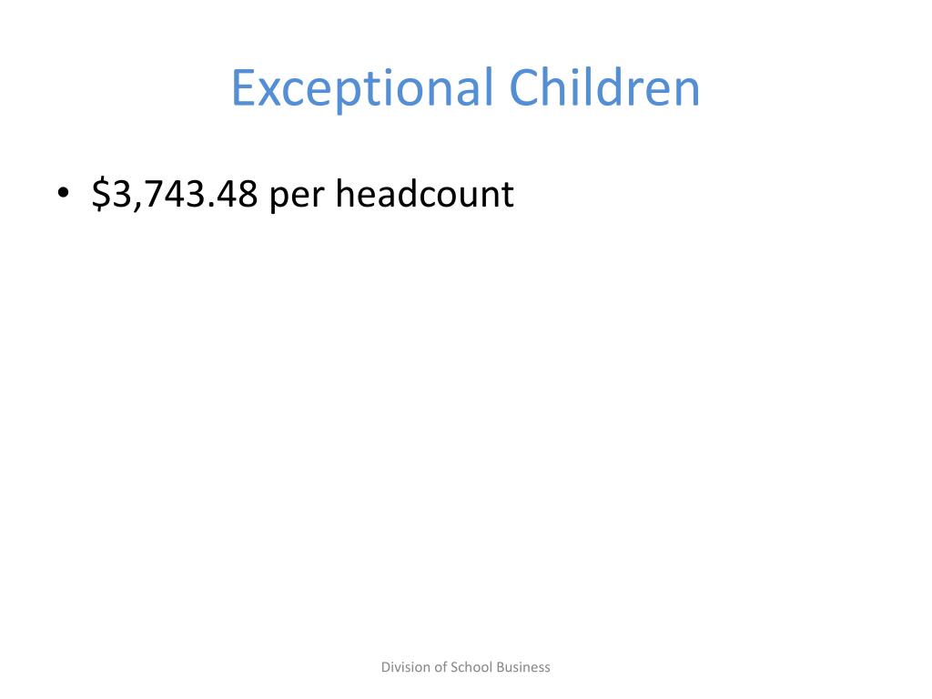 Exceptional Children • $3,743.48 per headcount Division of School Business